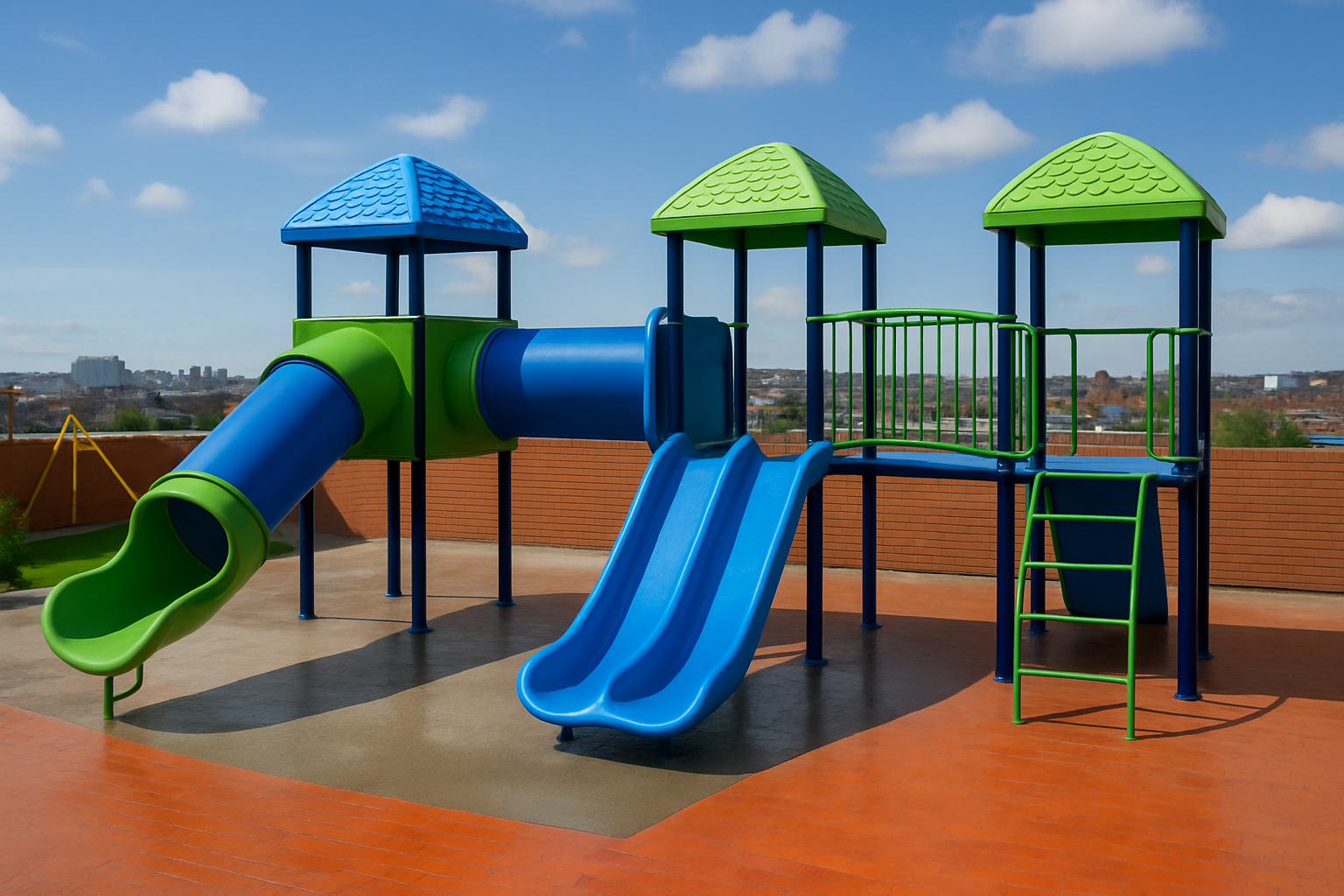 Parques Infantiles Línea GoldDiseñados con estructura metálica, accesorios en fibra de vidrio , plástico, y acabado en pintura electrostática. Ofrecemos un diseño moderno y exclusivo, con instalación disponible en todo el país.