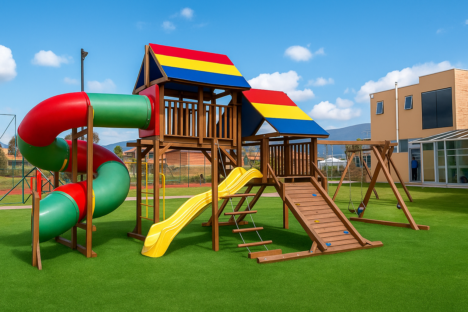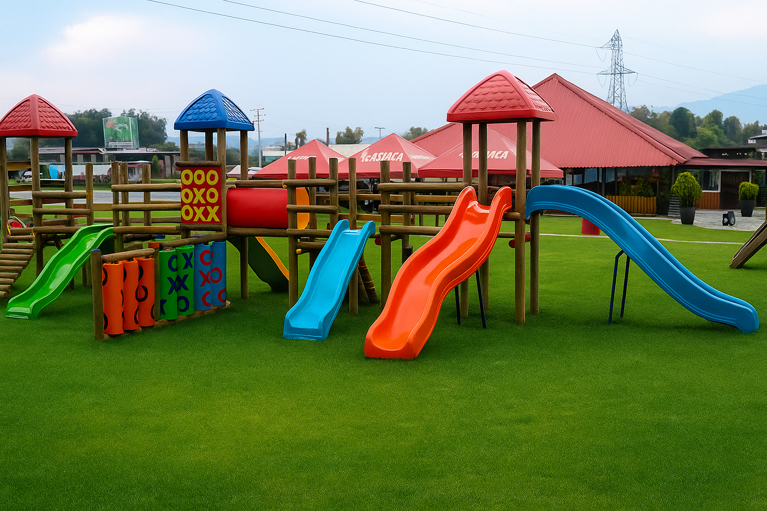 Nuestros parques exteriores infantiles en madera combinan la belleza natural con la diversión y la seguridad, creando espacios de juego encantadores para niños de todas las edades. Fabricados con madera de alta calidad y tratada para resistir las inclemencias del tiempo, estos parques ofrecen un entorno cálido y acogedor donde los pequeños pueden explorar, jugar y desarrollar sus habilidades motoras. Cada diseño es cuidadosamente elaborado para estimular la imaginación y la creatividad, garantizando horas de entretenimiento en un entorno seguro. Perfectos para jardines, áreas recreativas y espacios públicos, nuestros parques infantiles en madera son una elección sostenible y estéticamente atractiva que armoniza con el entorno natural.